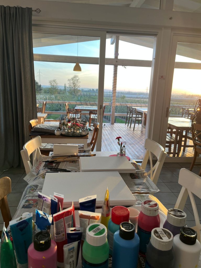 Der Abend im Café Landlust in Meckenheim-Merl beginnt mit einer geführten Meditation, die Deine Sinne öffnet und Deine kreative Energie entfacht.